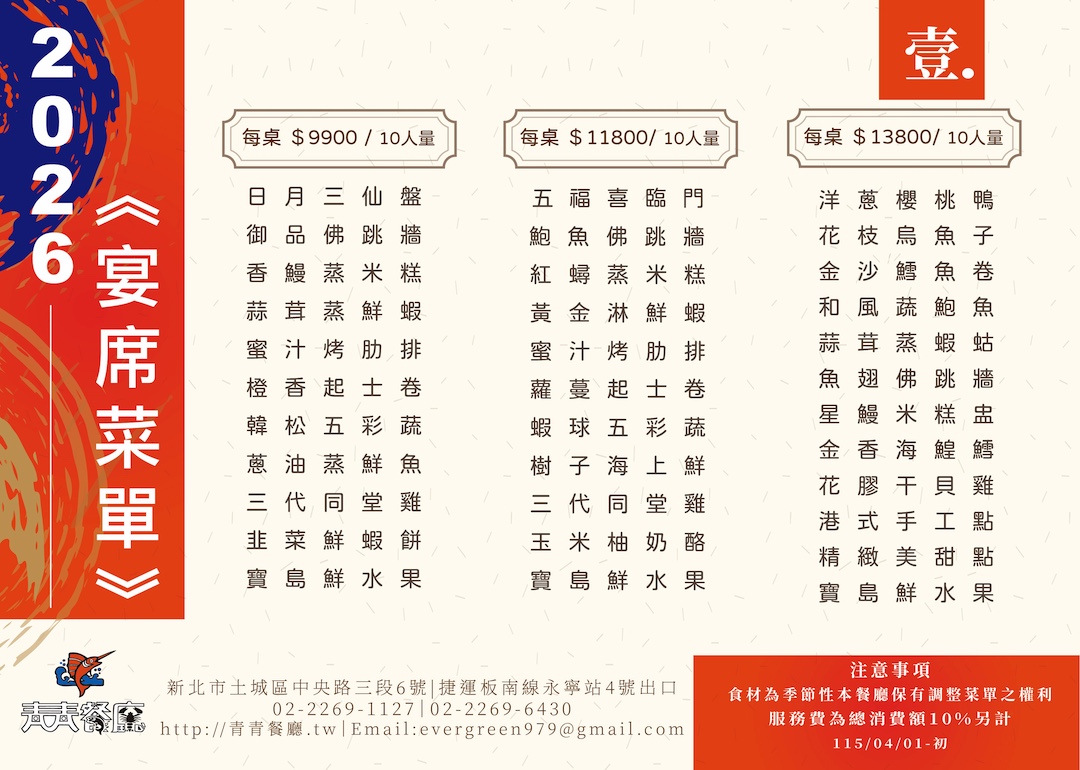 >> 115年宴席菜單9900~13800
